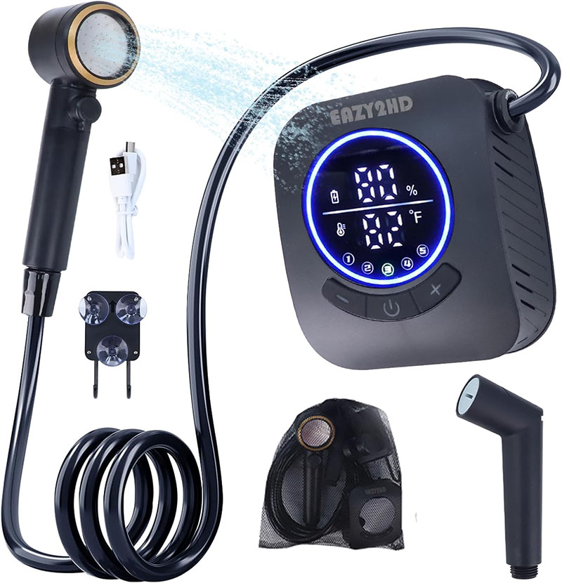 Eazy2hD Portable Camping Shower 8000mAh Rechargeable Outdoor Shower Pump with Intelligent Display, 4 Spray Modes