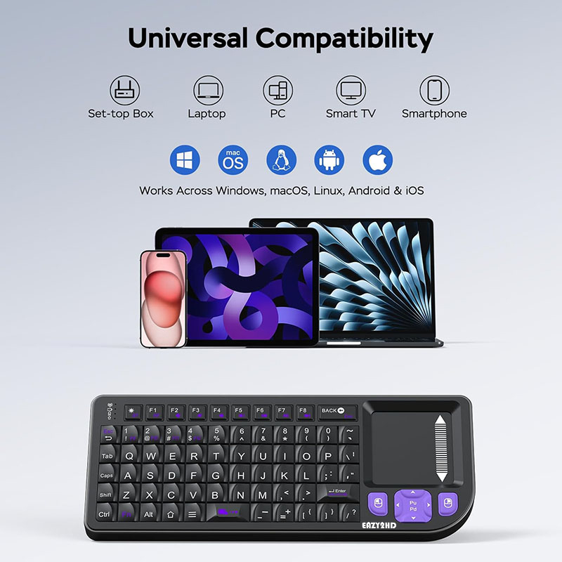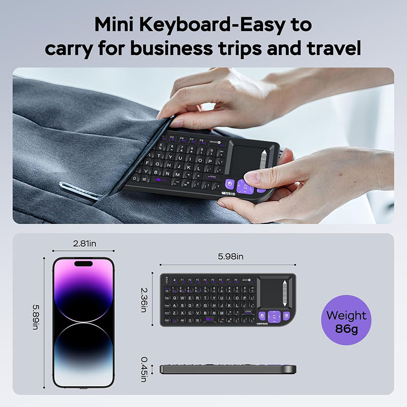 • Mini keyboard with touchpad,It combines multiple functions: wireless keyboard + mouse + PC game control + touchpad,Suitable for PC/Tablet/TV/smartphone.
