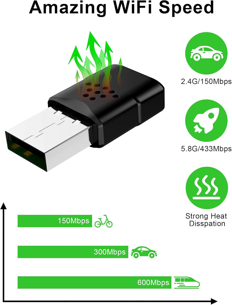【Fast and Stable Network Connection】This USB Wi-Fi adapter for PC delivers blazing-fast speeds of up to 433 Mbps on the 5 GHz band and 150 Mbps on the 2.4 GHz band, perfect for lag-free gaming, streaming, and browsing. Ideal as a Wi-Fi adapter for desktop PC, it ensures a stable connection for both home and office setups.